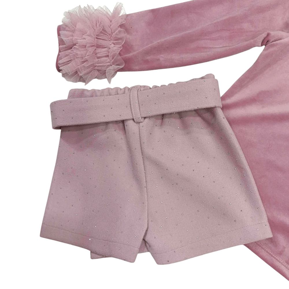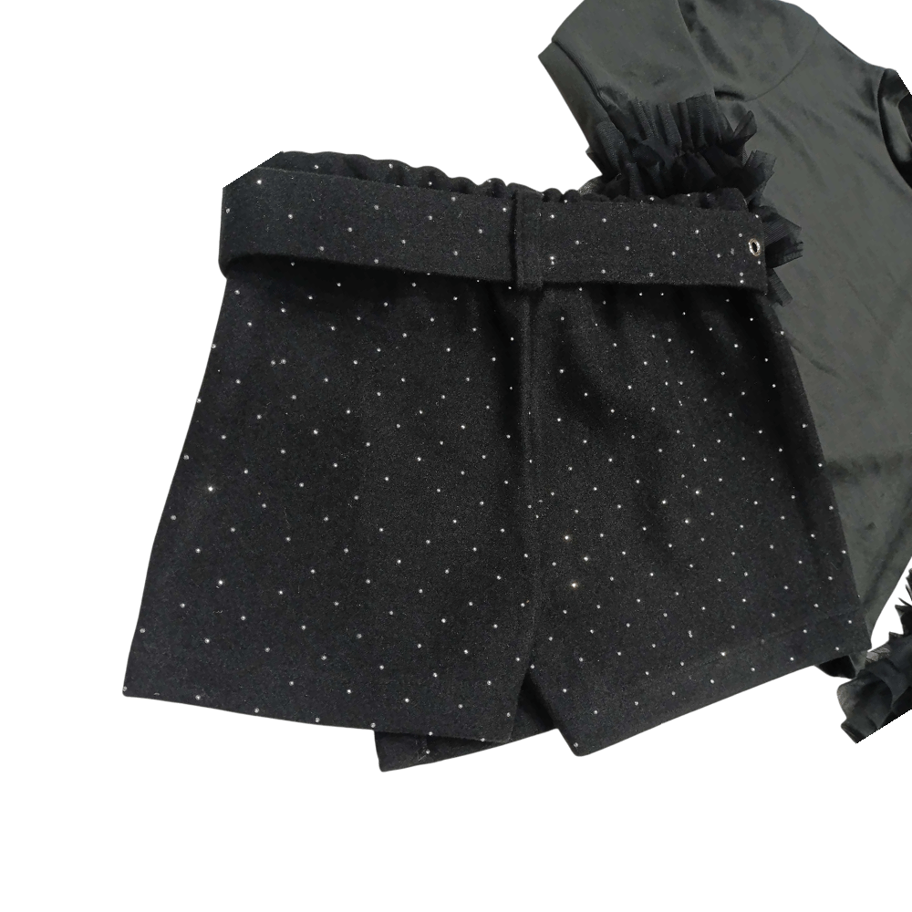 Σετ με σορτσόφουστα και βελούδινη μπλούζα σε μαύρο