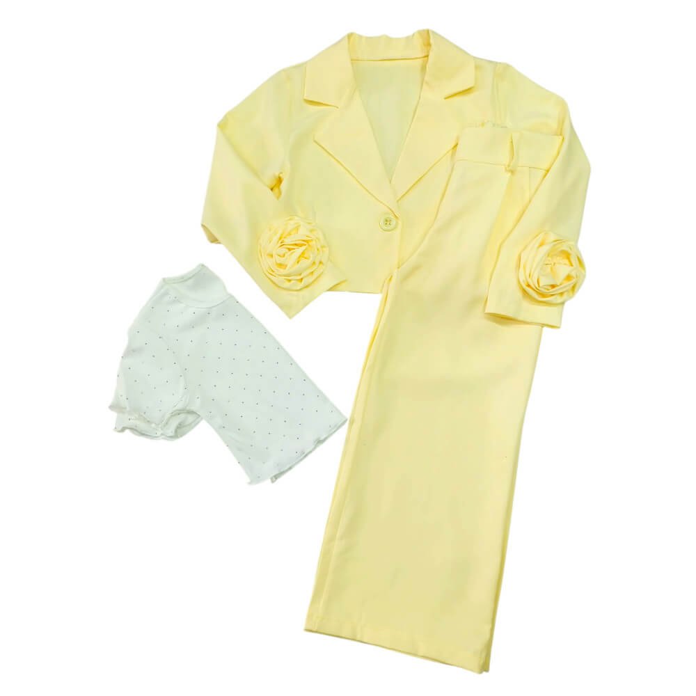 40€Original price was: 40€.32€Η τρέχουσα τιμή είναι: 32€. - Κίτρινο Κοστούμι με 3D Λουλούδια & Τοπ ριπ με στρας