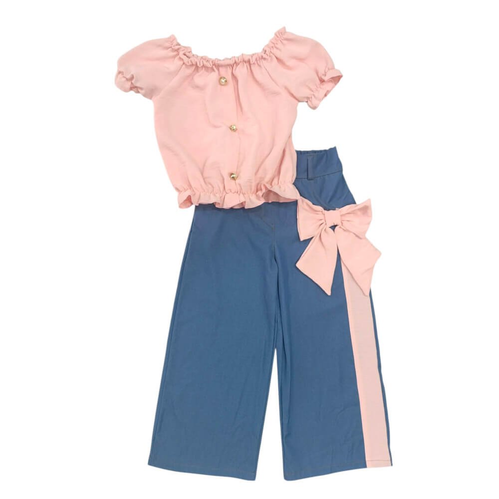42€Original price was: 42€.35€Η τρέχουσα τιμή είναι: 35€. - Σετ με Τοπ & Παντελόνα με Διακοσμητικό Φιόγκο σε ροζ